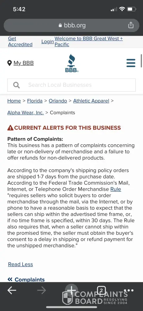 Alpha Wear Fitness’s earns a 1.5-star rating from 0 reviews and 25 complaints, showing that the majority of fitness enthusiasts are dissatisfied with their apparel.