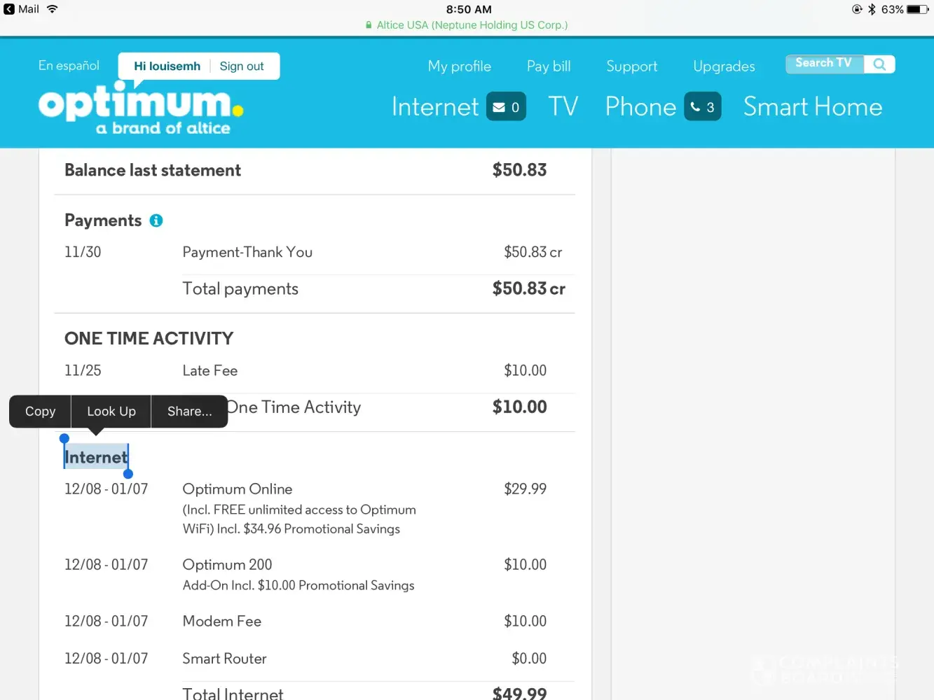 Read full complaintTV/internet
