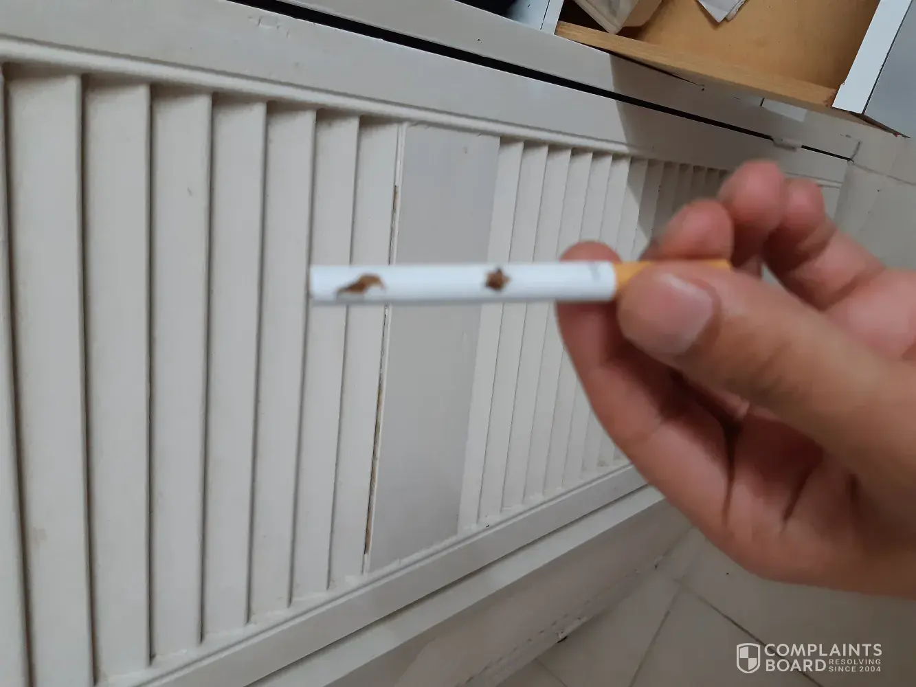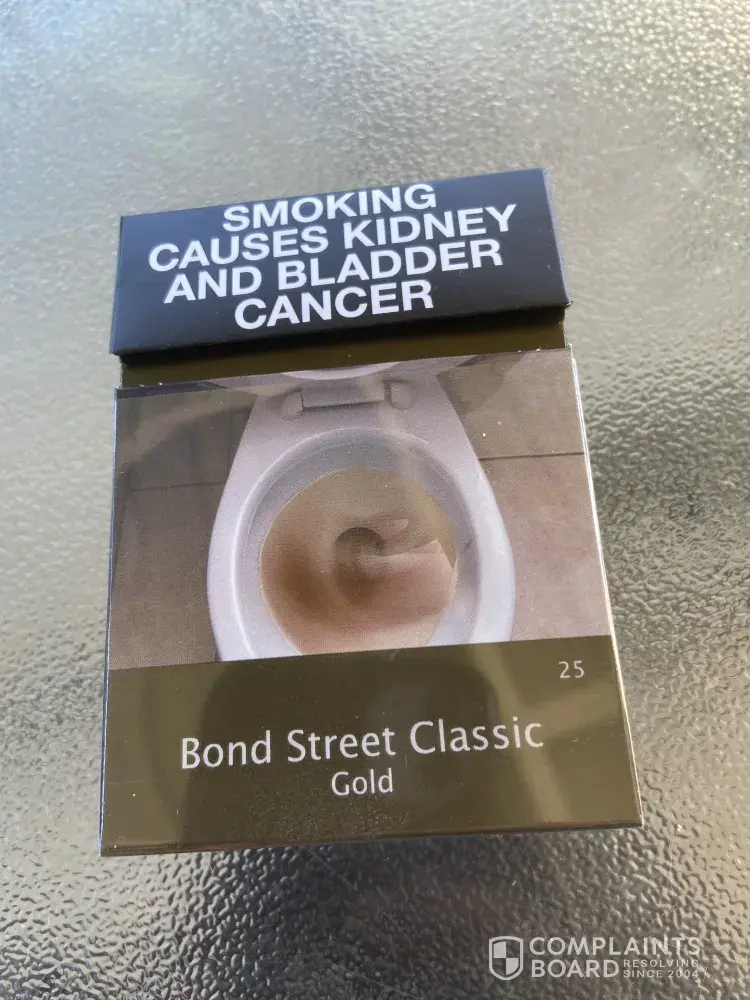 Desired outcome: Request reimbursement as this would not occur in a newly opened packet of bond street cigarettes