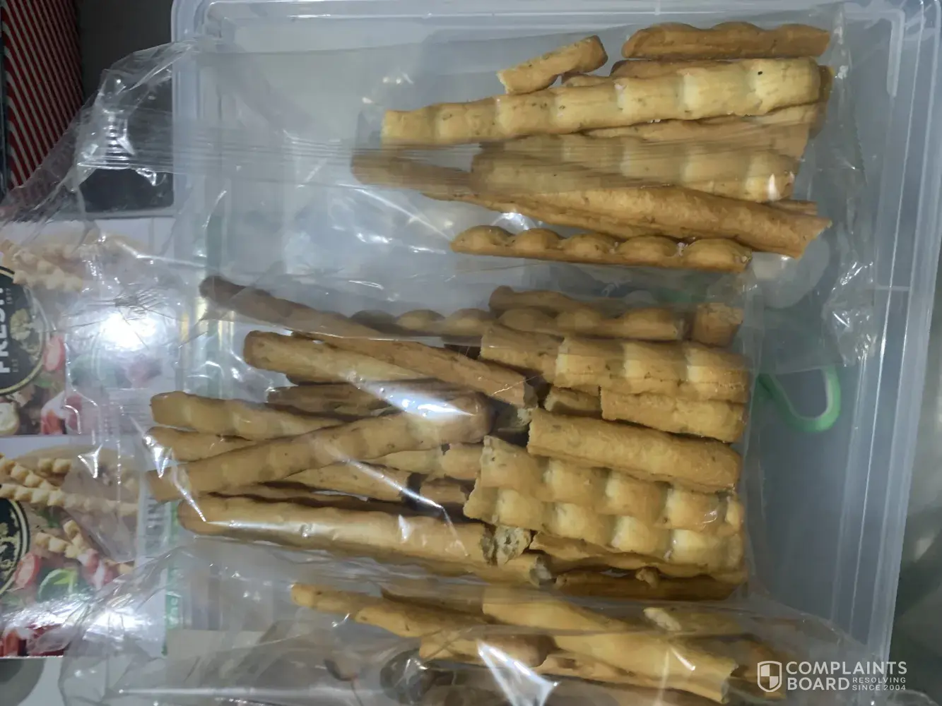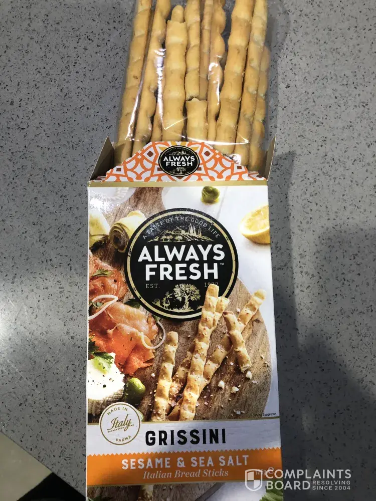 I am writing to you as we run a business and use your products in our food platters, every time we buy a packet there are always broken sticks and we are very fussy when shopping and always put delicate items separate and even when doing this there is always broken sticks in every packet. The last time we purchased which is every few days as we are a busy business, we bought three packets and could not use any of them, we pride ourselves in our business and suggest different packaging for your bread sticks as we believe all products should come intact, please find attached photos of the last three packets we purchased and also photos of how we use your products in our business