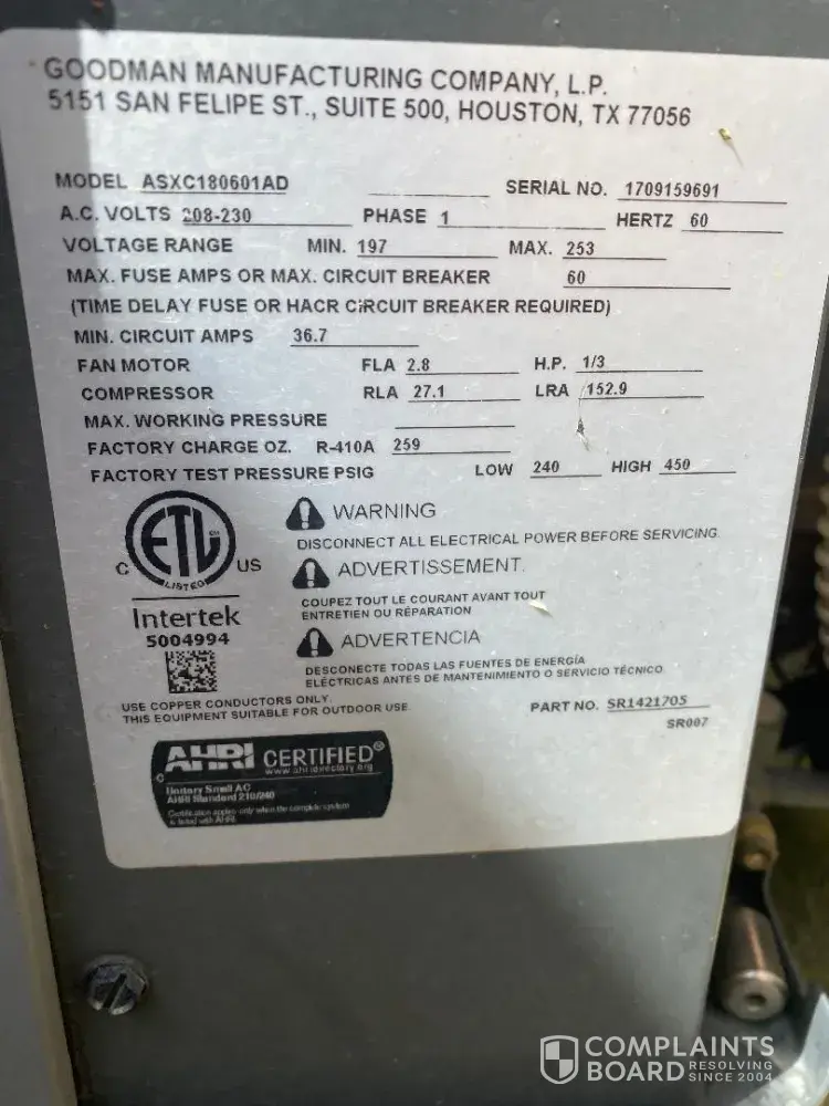 June 2021 had to replace my AC was told I had to have both heat & air replaced wanted a Goodman because the old inside unit was a Goodman and it lasted 21 years without being serviced and with no issues. June 2021 I was told you can't get a Goodman AC but Amana was same brand under the hood. Not true. June 2022 just one week shy of the labor warranty being over the AC has failed twice. Tech claimed it was the computer board and a "fluke" but I know better. This junk was engineered to fail one year after installation. I have paid $9.5K for this mess and I am totally disappointed. Is this how you make America great again by ripping off its citizens?