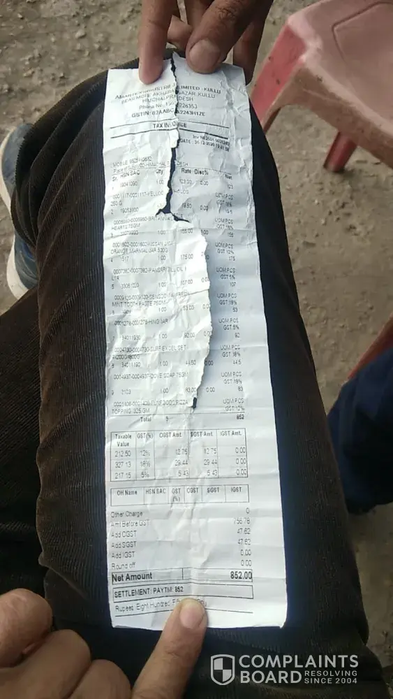 I am Kanak Hasta from Rampur Bsr (Himachal Pradesh). Today, on 24/01/2020, I paid Rs 2982.00 for the bill amount of goods from Amartex store in Rampur Bsr. After billing, I found out that there was a lucky draw of ₹3000.00 for the amount above Rs 3000.00 while no such information was shared to me by Biller. Only some goods of ₹18.00 were to be purchased. So I am very disappointed with your store and service about this. Please treat this amount as goods of ₹3000.00 and I should be provided with coupon facility. Today's bill is attached together.