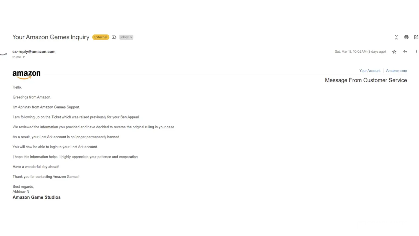 I was away from the LostArk for a period of time, recently I wanted to start again with some friends and I found out I was banned.