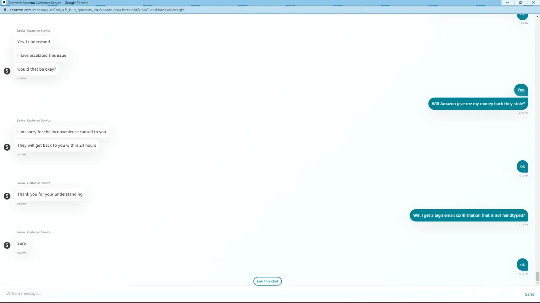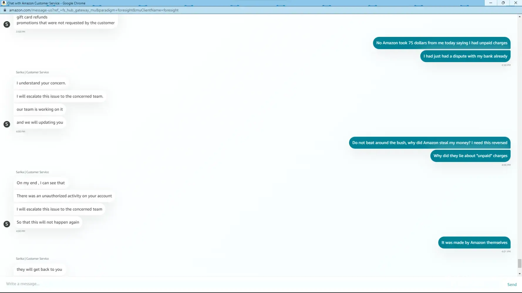 We’ll never know, because Amazon customer service doesn’t disclose any details to me (I assume the same is true with you) and their customer service is a true joke. The rudeness and disrespect I experienced on 4/17/23 by an Amazon CSR was absolutely mind blowing. Good luck, I hope you get your money back. I’d still recommend filing complaints with the regulators, and WA state AG.