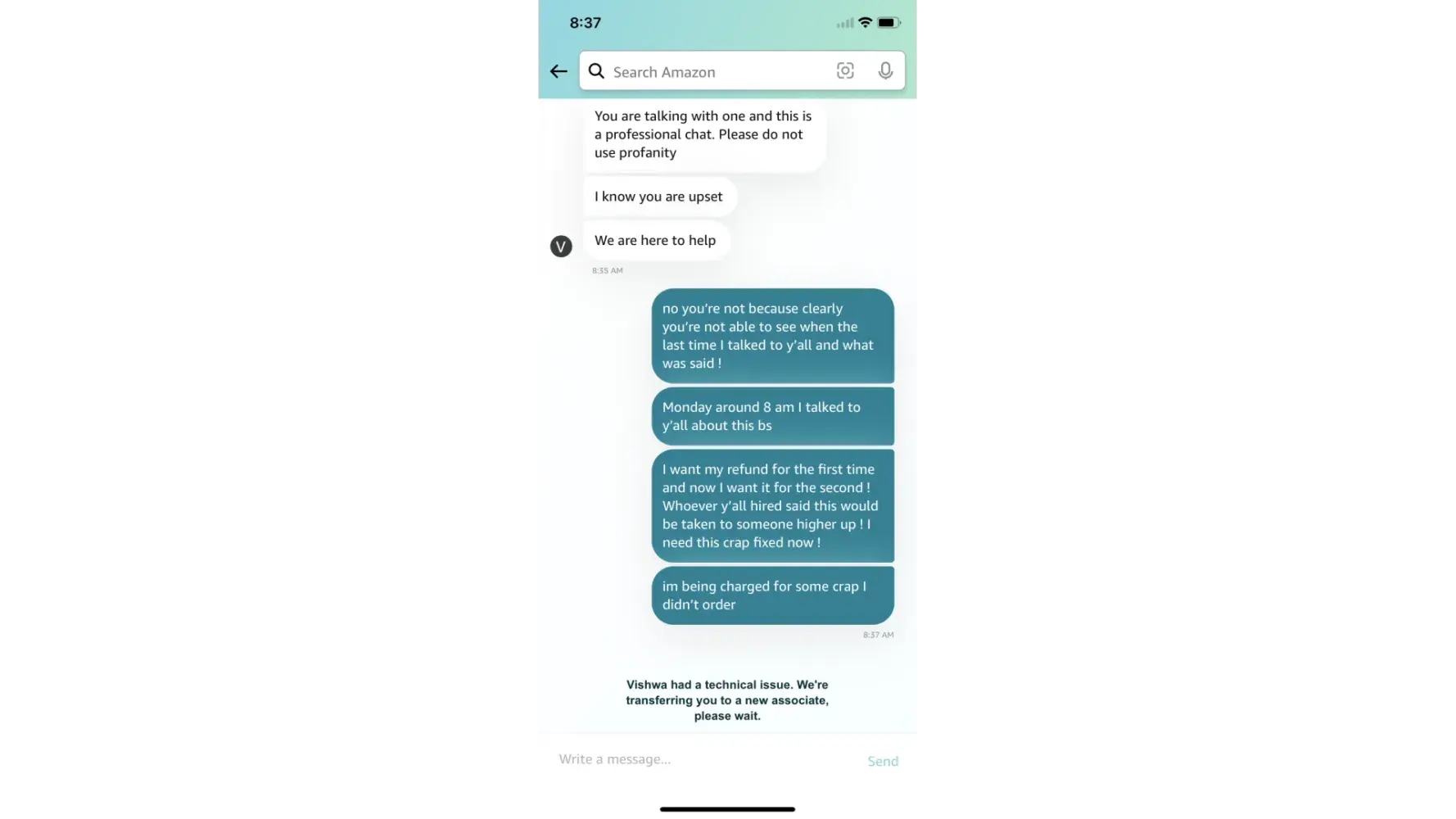Desired outcome: My refund for Monday and Saturday! To get paid for emotional abuse from amazons employees.