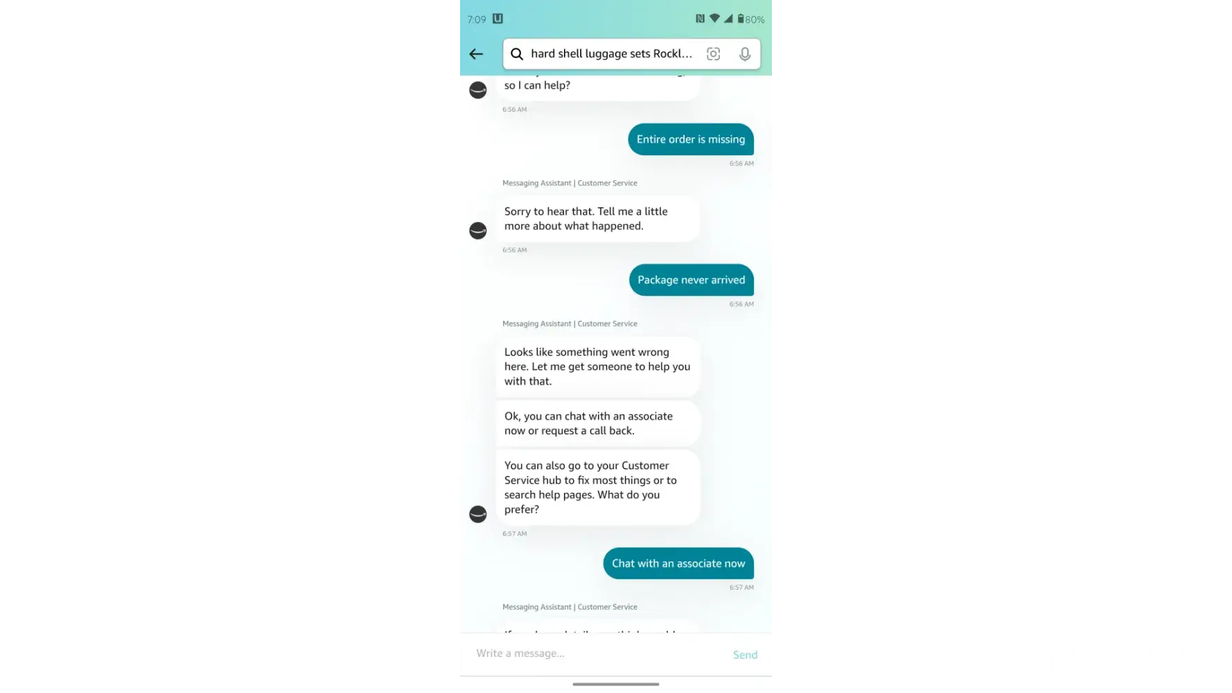Spoke with Amazon customer service(I had a hard time understanding their (English) and that the delivery date was being extended by 2 days because of delivery issues. I am an Amazon Prime member, and I wanted to cancel this order because they did not notify me until the day after the delivery date. This is the third time I have had delivery issues with Amazon.
