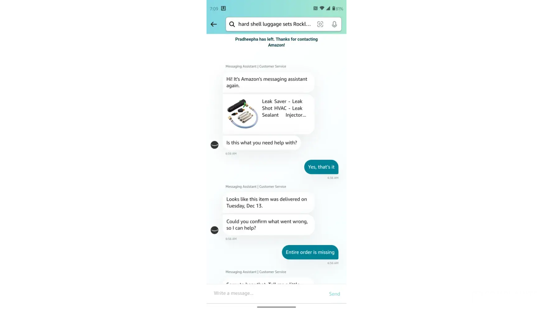 On December 13th I had a package from Amazon that contained Leak Saver - Leak Shot HVAC - Leak Sealant Injector and Condensate Line Blaster - Non-Contaminating CO2 Cartridges - for A/C and Mini Splits - Systems and my package was stolen from my doorstep and I've contacted Amazon on 3 separate occasions and was told the first 2 times to wait for an email from the escalation team to receive my refund and today I contacted Amazon again because I haven't received any emails from their escalation team and they told me because the package was delivered to my address which was correct weather or not the package was stolen that they will not refund me or replace the item. So they basically robbed me of my money and item. I need this resolved and I want my money back for this item I paid $40.68 for this item it was a gift card from my husband's job and from our bank account. This was supposed to be a Christmas present for my husband and now I have just been robbed by Amazon and I'm livid about this.
