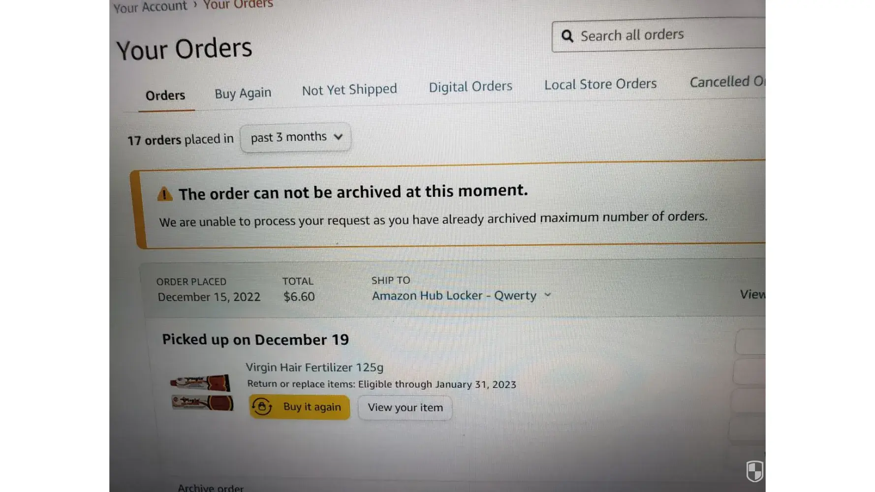 But let me repeat, amazon now tells me I had one month to do that.