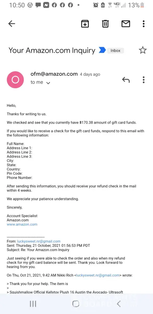 I would love to see the evidence that Amazon has saying that I am buying and reselling to my customers? I didn't realize that being a good Christian person and blessing random people off their wishlist/registry was a crime and going against standards! Last I knew Amazon list and registries are for public use and there is absolutely nothing wrong with me blessing others with items off their list. It's items off someone elses list that is being bought with my money out of my checking account! With all the hate in the world these days it is really nice to be able to bless someone randomly and hopefully bring a smile to their face and a little joy in their heart. If it is wrong to purchase items off someone else's PUBLIC Amazon lists/registry then why are they public? So others can purchase items for you off your list?!? What really bothers me is for one, Amazon is accusing me of doing something I DID NOT DO! I have not or ever will buy and resell items. Also no proof can be shown to me, showing me all my supposed customers! Second thing that really bothers me is my $170 gift card balance was for a lot of both my girls Christmas! Now since I was trying to be a good Christian and bless others, I have now been accused of a false accusation. And can not access MY gift card balance. That balance belongs to me because I have done nothing wrong and have yet to see exactly what I have done from anyone employed with Amazon. Thirdly, my girls got Amazon tablets last year for Christmas from their grandparents but they were linked to my acct so they can not even use their tablets anymore. Also how to do receive an email asking for my info for a refund check and I will have it within 4 weeks just to turn around and get another email saying nope you aren't getting it! Is my $170 gift card balance really going to break Amazon? No, but me losing that $170 gift card balance is really putting me in a bad spot with getting my girls' Christmas! Or not getting it I should say! also I paid my monthly fee of $5.99 on the 13th of oct. My acct was shut down on the 16th. So I should be getting most of that back, correct? Also once I got the first email saying my acct so closed there was no way for me to get into my acct and erase my card info. I do not think it's legal for Amazon to not let me erase my card Info so it can not be hacked and used by someone else. Since orders from my acct went out after it was closed. Really hoping my card wasn't being used to send those orders when I can't even get into account to get my card Info. Attached below is the email I received asking for my info for a refund check. Sent info in reply message and then received another email saying nope you aren't getting your gift card balance. Also spoke with 2 Amazon supervisors on the phone, shamone and Enrico, who both said that it isn't right for Amazon to keep my gc balance because it is legally my money.