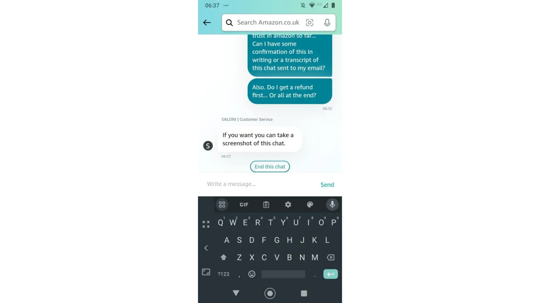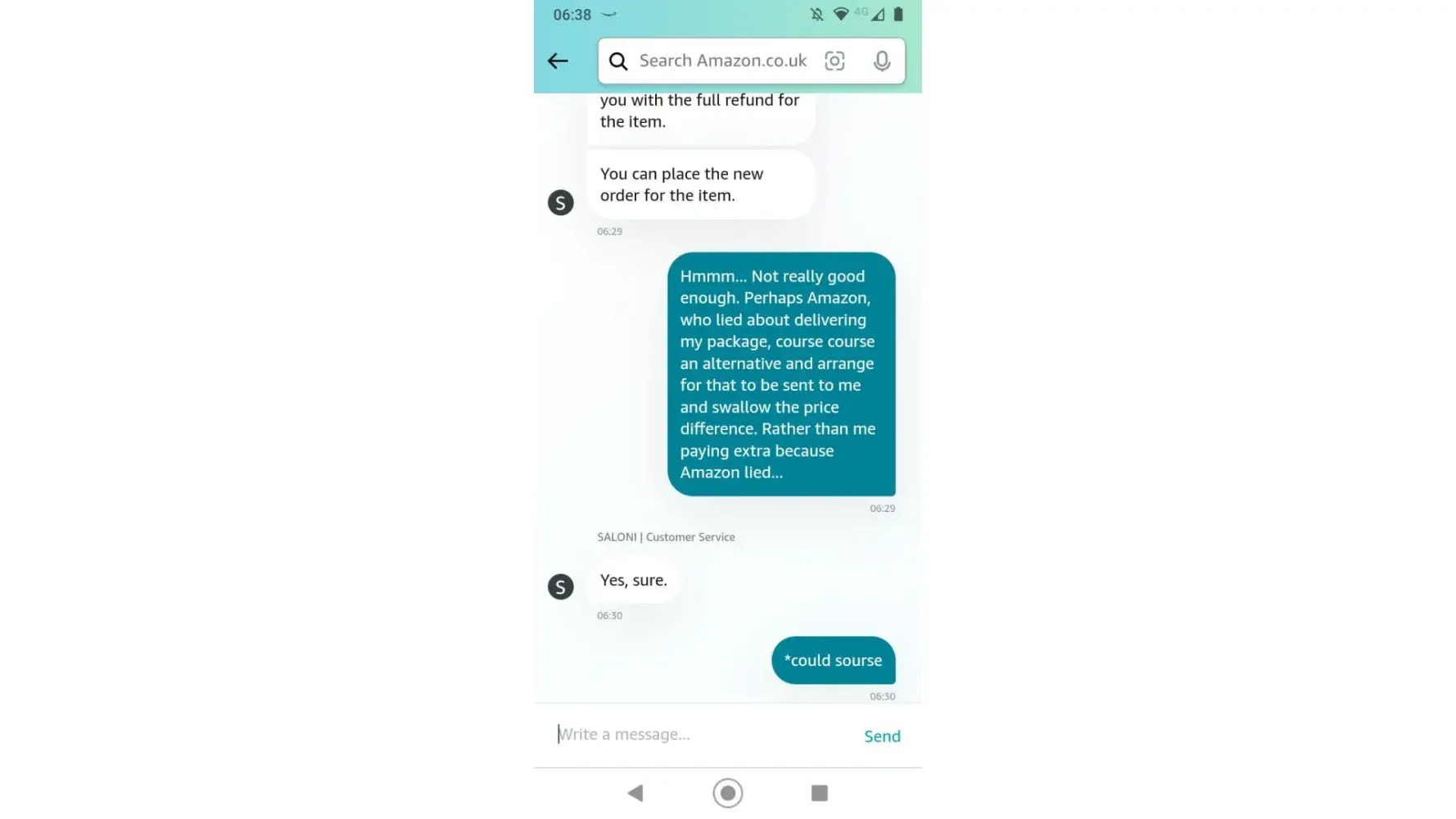 I did this but still no sign, so I again contacted customer services and asked them to resend my item, which they said was not possible. They however instead agreed to a refund for the phone. I explained that this wasn't a good enough solution as I had got it on a black friday deal and as amazon had lied about delivering it I expected them to honour the price I paid. They explained that they couldn't do this exactly due to the item being from a seller and not amazon. I asked how they would resolve it and suggested they make up the difference in price as they had lied about fulfilling the order causing me to be in this situation. The customer services representative agreed to this suggestion. (TURNS OUT LIE 3) I asked how I should go about getting the money afterwards as I didn't trust amazon due to the lies so far. They said I should take a screenshot of the chat as proof, which I did to the best of my ability. I asked for the conversation in an email but apparently this wasn't an option so it did not happen.