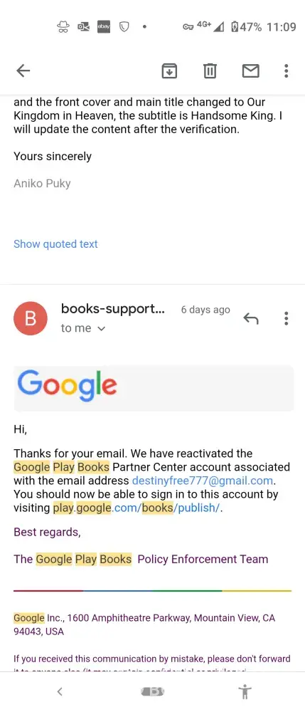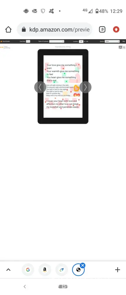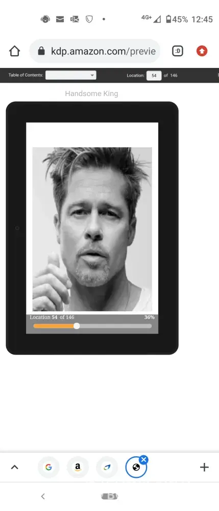 Author: Brad Pitt & Aniko Puky: Our Kingdom in Heaven: Handsome King. I emphasize it's total humiliation of a publicly well known person and of course me. Every time I should check on it?, once it's published in its normal version then should stay there so. And Google Play Books on the base of your Amazon Kindle Book link let me to publish again, they asked for a link of a site where it has been published already/ another proof/, so it was at the time of their verification in normal readable epub state. Take a look at the preview proof and the first 3 screenshots and compare. The 9th says epub uploaded successfully, number 4.5, 6, 7 are the screenshots of the published epub.