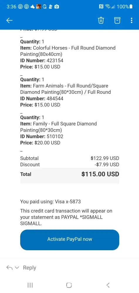 Have not received an order of 5 diamond paintings ordered on June 25 2021.