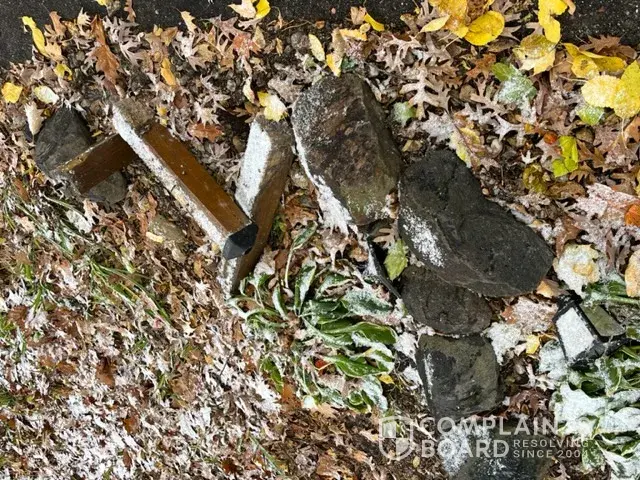 Later in daylight I looked outside and saw the damage the photos will show. The light was destroyed, and the wood structure broken apart (screws ripped apart that were holding it together and ripped out of the ground). I would think the car had damage.