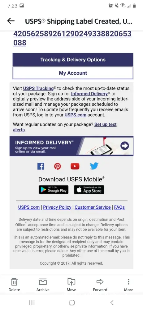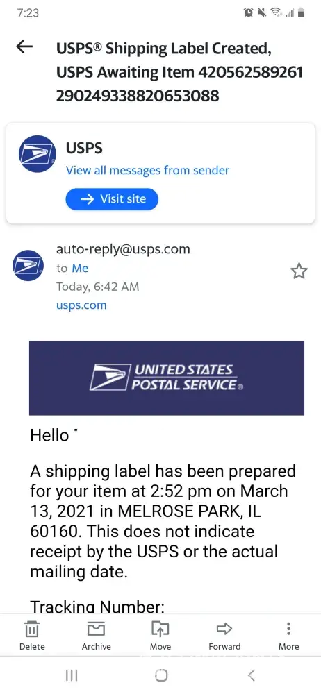 4. After inspection of the item I immediately went onto the USPS website found that package was later signed off and marked as delivered by the USPS driver. I then on USPS website had requested for a proof of delivery which they've had confirmed that item sent was indeed a postage letter and that it weighed 4 ounces (see attachment)
