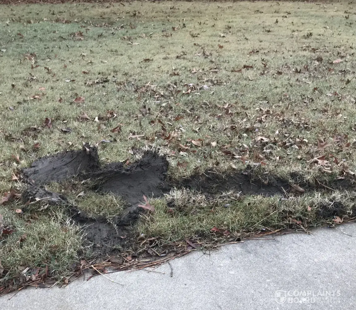 When retrieving my mail on Dec 10, 2020, I saw a DEEP rut (6 inches) in my presteen sod lawn. We live in a cul de sac.