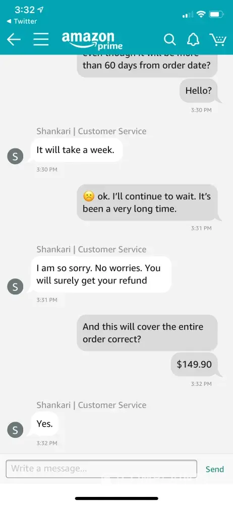 Amazon's customer service has gone downhill terribly. You can no longer speak to anyone. You can only communicate via chat. Chat customer service people are terrible and rude and not helpful. Amazon seems overwhelmed and unable or unwilling to resolve any issues with shipments anymore.