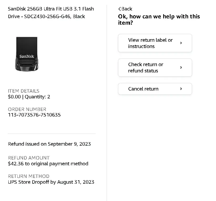 The problem is simple. The refund was listed as $42 dollars for two items. I returned both. The refund I was told had been processed, but it was only for one item. I have over an hour attempting to resolve this issue on line. I have waitted over an hour for an Amazon representive to call. I tried CHAT, but was led through a maze of options not of which pertained to my problem. My feeling is that Amazon did not want to bother. This is the second time I have had this problem. I was able to resolve the issue before, but could not do it again.