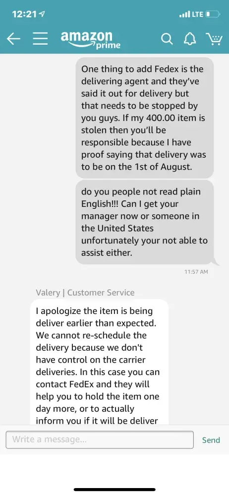 I ordered an expensive tv from Amazon during the Prime Day sells. It took a week for delivery but I thought okay. When UPS tried to deliver the tv the box was open. I refused delivery and contacted Amazon. They refused to do anything about it.