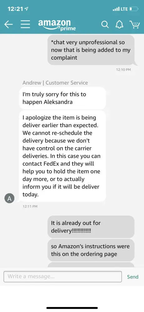 Promised a delivery date, had arranged for someone to be there on that day and then without notice they decided to ship my item a day early. I had to use my last paid day off to be there and now I'm out that day of pay. All I wanted to know was if they would reimburse me if the package was stolen or lost and it was a run around with three different agents. Terrible customer service who had no clue what is really happening.