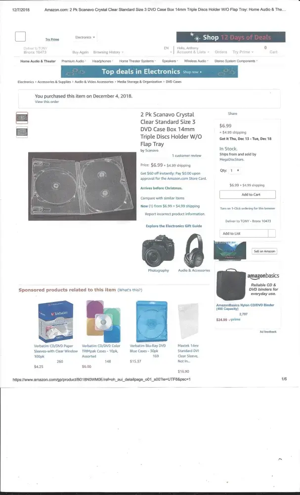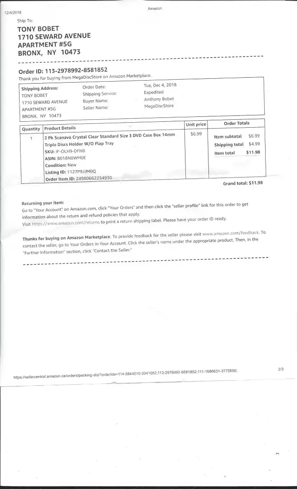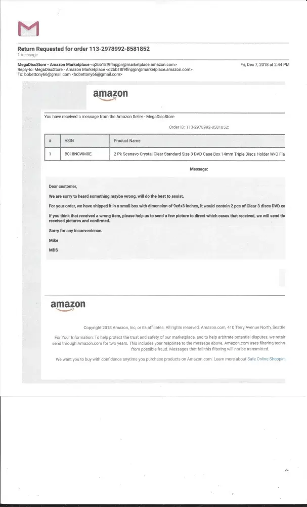 unit 4. i order on October 4, 2018. The item i order is 2 pk Scanavo Crystal Clear Standard size 3 DVD case box 14 mm triple disc holder w/out flap tray. the price is $6.99. order# [protected]. i order an the item that i mention. Today, i received the item. but, i received 2 clear DVD that supposed to received 2 DVD clear cover. In the below of this is page.