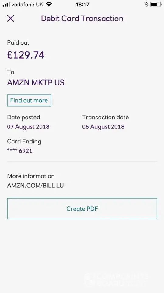 On the 6th of August 2018 my Amazon account was stolen and fraudulently used for 4 transactions on Amazon US - the transactions appear on my bank statement in UK in British pounds as the following amounts - £37.45, £24.95, £129.74 and £93.49 - the charge descriptor on the bank statement is - AMZN MKTP US, (also mentioned on the bank statement is - AMZN.COM/BILL LU), furthermore the last 4 digits on the credit card that was used fraudulently are: 6921. The transactions were done on the 6th of August 2018 and appeared on my bank statement the 7th of August 2018.