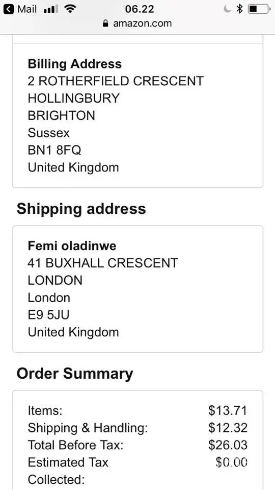 The delivery address of the person who committed the fraud/theft as it appeared on my account is as follows: