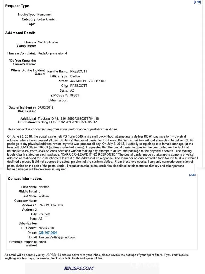 Regarding two separate shipments, 9361289672090372784418 and 9361289672090374605612, the USPS carrier did not bring the packages to my house; instead carrier left PS Forms 3849 in my cluster mail box telling me to pick them up at the post office; Labels clearly stated "CARRIER -LEAVE IF NO RESPONSE; however, I was at my house all day both days, working on my front porch; the postal carrier never came. Shipping to one's physical address is of no value if the USPS does not do so. I have filed a complaint with the USPS Inspector General's Office (see attached); you should too