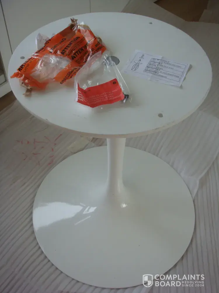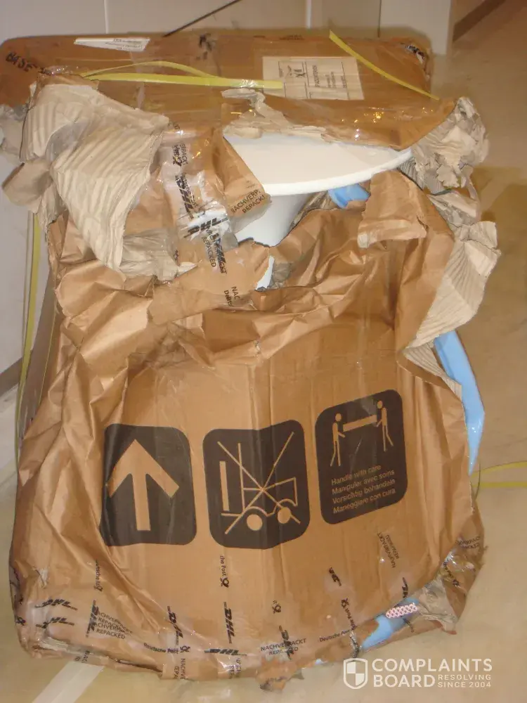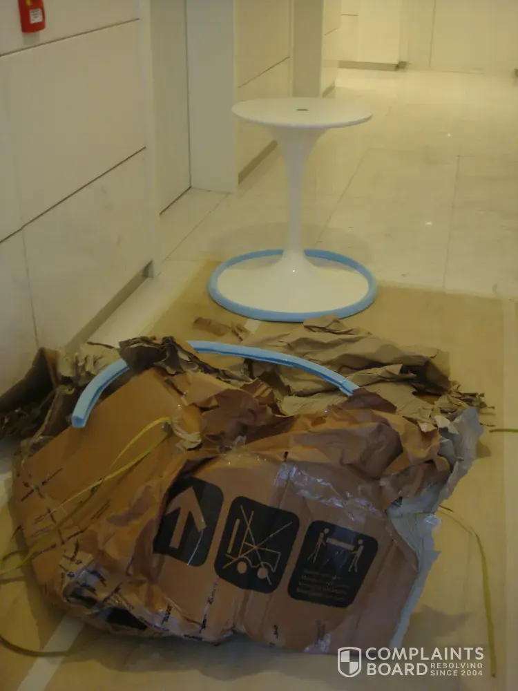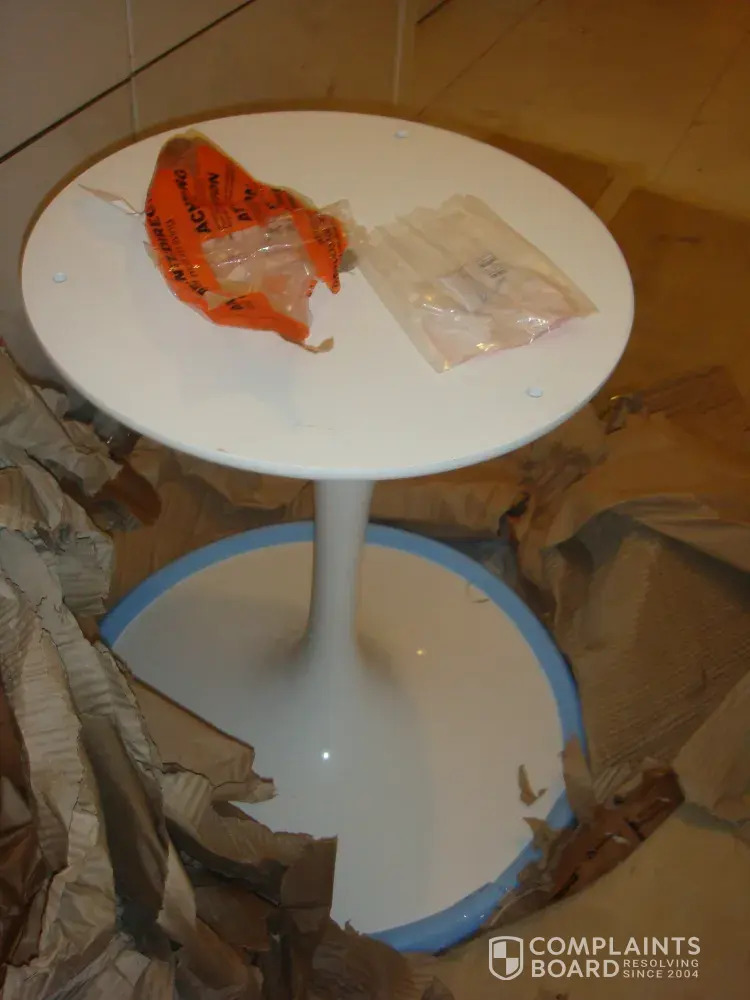 We ordered a table, the first arrived in the back of a truck with all the corners broken off. - we refused this shipment immediately. The second arrived with no damage to the packaging - but the table itself was damaged and missing legs. The legs finally turned up, but the table is still damaged. Ambiente direct are being difficult in that they are now saying we should have refused the table! (because obviously I have x-ray eyes and can see thru the packaging). What course of action do I have to either return the table for full refund, or have them collect and replace the table? They have offered us a 10% refund, which isn't enough to warrant keeping a damaged table for the price we paid for it... never mind the fact that I ordered it in December and it just arrived!... and I absolutely refuse to pay to ship the table back to them when it isn't my fault it was damaged in the first place. Any advice?