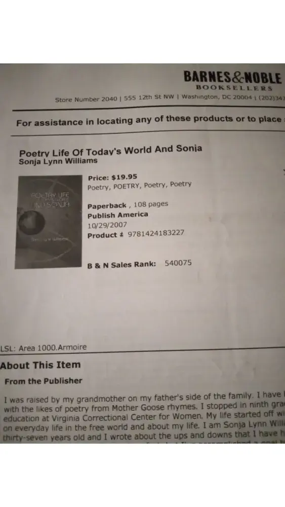 Will you please send me my desired income I requested that Publish America has stolen from me before and after the class action lawsuit my book, Poetry Life of Today's World and Sonja sold for nearly ten years do you think I should contact DC mayor's office and Frederick MD mayor and send paperwork along with a answer from Joe Biden