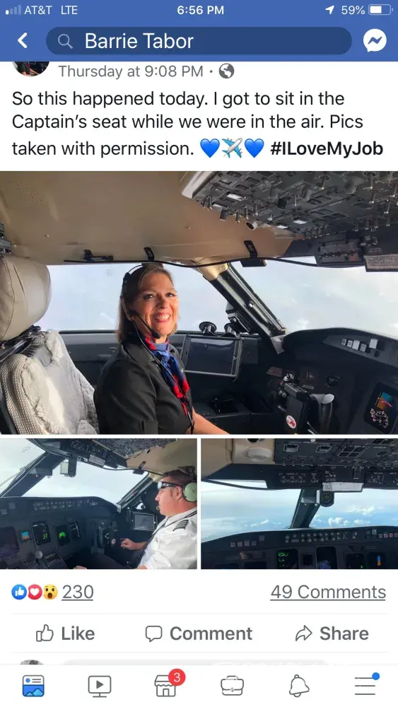 She has been posting on social media about sitting in the captains seat during flight and has posted pictures to prove it. This seems like a serious safety issue and contradictory to safety measures, especially those enacted since 9/11. I'm sure passengers wouldn't take any comfort in knowing this takes place.