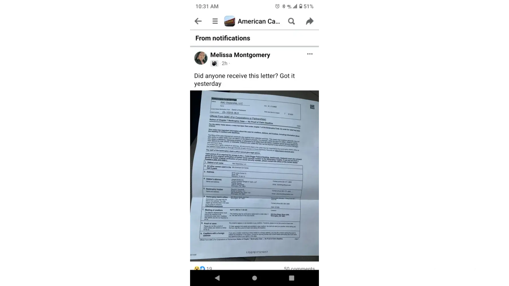 Desired outcome: I want my money back for the lies I was given. I would have never agreed to that. I want my car to umbrella under their bankruptcy. I did not have my car Mar 1st