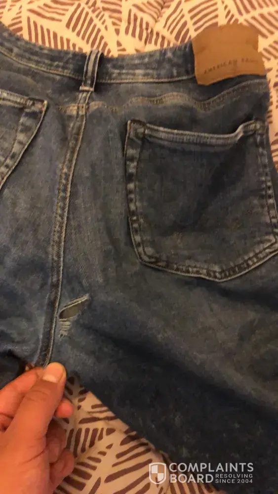 I purchased a pair of jeans online, order #[protected], and the material on the jeans is so thin that the bum is see through. The material wore down very fast. I have jeans from American Eagle that I have had for 5+ years, so I don't know what happened with this pair. I have 20+ pairs of American Eagle jeans, and I have never had this issue. The quality for this specific pair is quite disappointing.