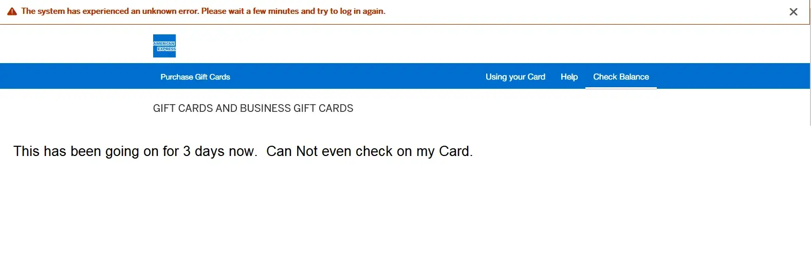 Desired outcome: AE need to reimburse my unused business gift cards that have deactivated.