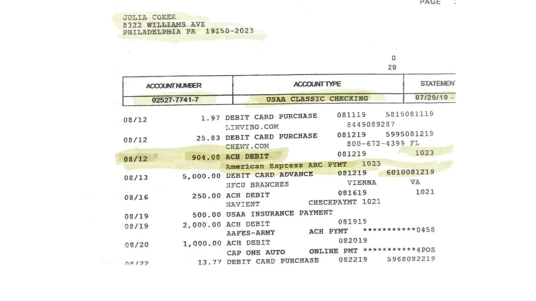 I paid my bill in August of 2019, in the amount of $904.08, and American Express has denied receipt of the payment stating I owe them $903.71, causing me to have a negative rating on the deadly credit reporting agencies. This has persisted to exist even though I have sent numerous faxes, and a return receipt request, with a copy of my bank statement indicating the payment to them.