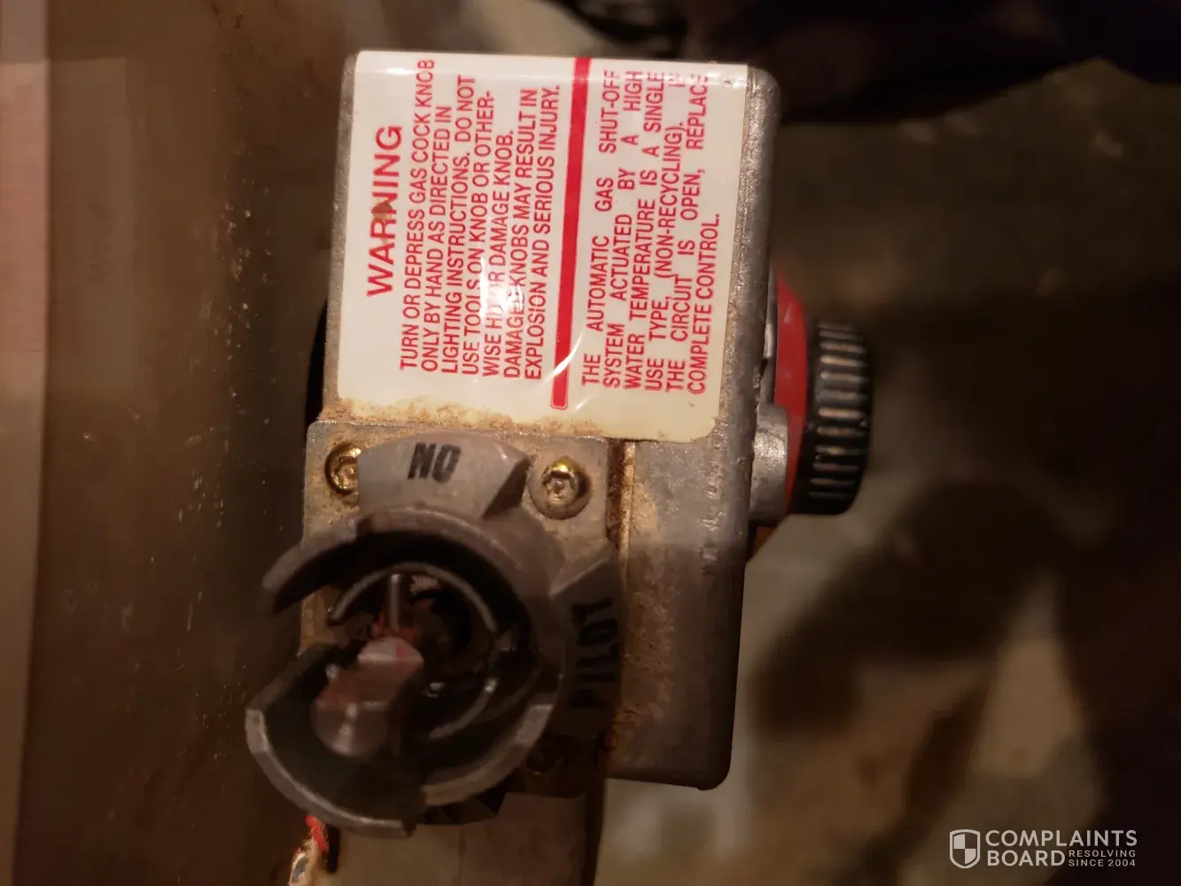 The pilot on my hot water heater was broken and needed to be replaced or repaired. I called ahs for service on september 3, 2019. After ahs collected the seventy-five dollars service fee, the job was assigned to waldorf plumbing llc. Waldorf plumbing llc came out to repair the water heater on september 5, 2019. Waldorf plumber said that he did not have the part but would put an order in for the part. He took the broken pilot knob so he would be sure to get the right knob. Waldorf plumbing said in order to save time, the part would be sent directly to my home. The part never came. I contacted ahs because I did not receive the water heater part that waldorf plumbing has ordered. Ahs said the part was not ordered because the on and off knob on a water heater is not needed. According to ahs, the knob is cometic but I refute that assessment. The lighting instructions on the the water heater does not say that. The instruction for lighting the pilot clearly states do not use tools to turn on. Ahs and waldorf plumbing are instructing me not to follow the safety guidelines on the water heater in open view in big red letters. The safety guideline instruct me not to use tools to turn on and off. I believe pliers are considered tools. Without the knob, I don't know the position to set the knob to light the pilot.. Attached below is a picture of the water heater before ahs sent waldorf plumbing and a picture of the water heater after being service by waldorf plumbing. Ahs and waldorf plumbing are telling me to put myself, my family and my property in harms way by ignoring the safety instructions on how to properly light the water heater and just use plier. The instruction clearly states not to use toosl to turn on and off water heater. I am requesting that ahs repair my water heater by replacing the missing knob. Your representative waldorf plumbing removed, the broken knob from my home under false pretense. He did not order another knob for replacement as stated. Have them return the part they removed from my home. I am asking that ahs send a different plumber with the new part needed for repair to my hot water heater with no additional service fees. Thank you for your assistance in this matter.