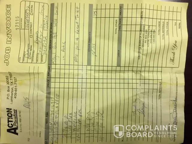 Mr. Varty, I do not feel I am being unreasonable. If the original plumber had come out when requested, my ceiling could've been saved. For whatever reason, though I had turned off the water and gas to the tank, it continued to leak. Apparently there's a hole in the tank itself and the pan had rusted clean through in several spots. I did everything I knew to do to stop the water. I packed towels/rags around it hoping to minimize the damage until the plumber arrived. But my situation wasn't deemed to be an emergency. I have also requested on 2 occasions to have a different plumber assigned to my case. Both times I was told it wasn't possible after a request had been submitted. So, I guess what your company is saying is that we're stuck with one plumbing option whether we like it or not. There's in excess of a quarter of a million people in the Golden Triangle area (Beaumont-Port Arthur-Orange) where we live. Surely there's more than one plumber to choose from. Here's the reality for my family right now: Despite paying for the top service warranty with your company, I'm about to lose money out of my pocket because no matter what happens with my water heater, I will be out several hundred dollars, if not more, to repair my bathroom ceiling. I have pictures. It's not pretty. I need a quick resolution to this ordeal. All I am asking for is to be treated fairly. Since the original plumber had already submitted his quote to you (with the additional charges included), I am thinking that the cash out would be the figure for parts and labor that he turned in to you, minus his add-ons. From what Dion said when he left a voicemail on Friday, February 23, AHS was covering the entire cost of the water heater and labor/installation. So, what was that figure? No one wants to say. Everyone is quick to rattle off the additional charges, though. I am more than positive that I can get a professional job done for the figure Action Plumbing planned to charge and that the "add-ons" won't be necessary. I have a bid stating that already. Going out-of-pocket completely makes the reason we bought the top warranty moot. In the meantime, we can't wash clothes or run the dishwasher. It's been over a week and a half now. My daughters can't use the shower in their bathroom. This is not at all what I thought this process would look like. There's also one additional thing that really bothers me about this whole situation with Action Plumbing. My in-laws live with us. They would've paid Action Plumbing whatever they said because they don't know anything about plumbing. I am quite sure that a lot of older people would've done (and have done) the same thing. A water heater is an essential item, so they pay. My home has two water heaters, so we are fortunate to not be completely without. I would strongly recommend finding another plumber to do business with. In fact, I'd be extremely shocked if this hasn't happened on claims between AHS and this plumber before. In the end, your customers are getting the short end of the stick.
