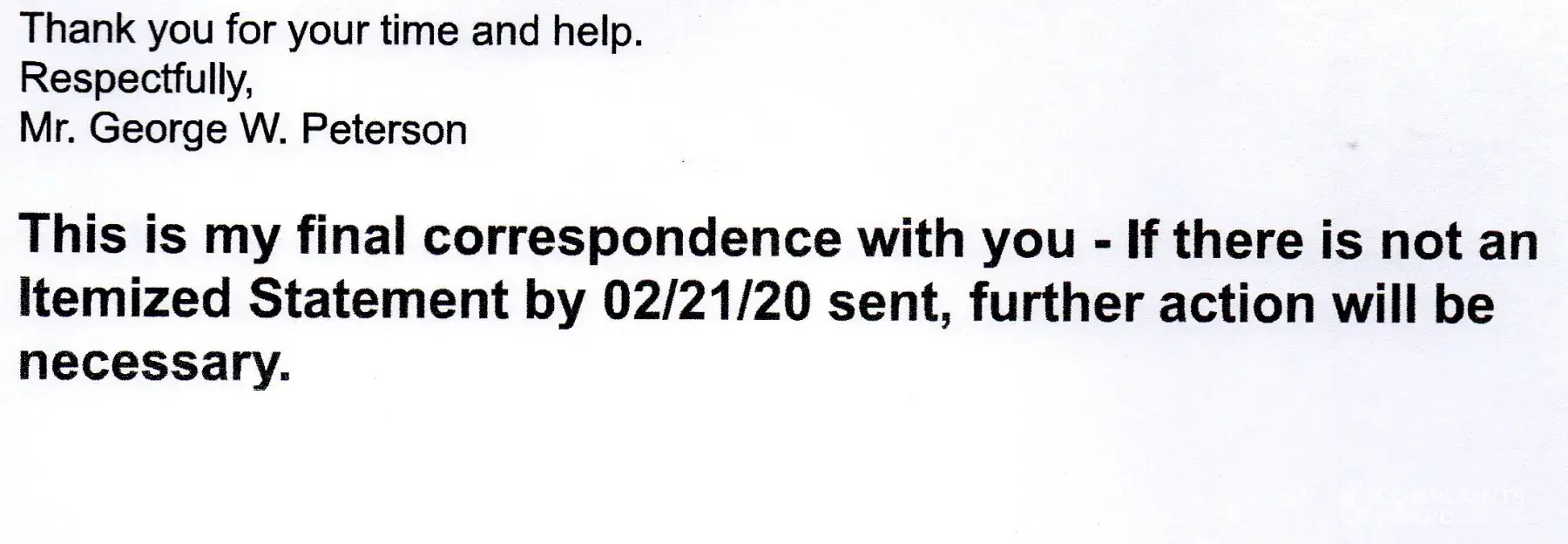 Unable to get an itemized statement