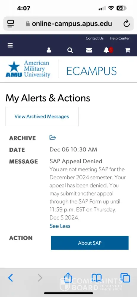 Read full complaint and 14 commentsAmerican Military University complaints: history and resolution overview