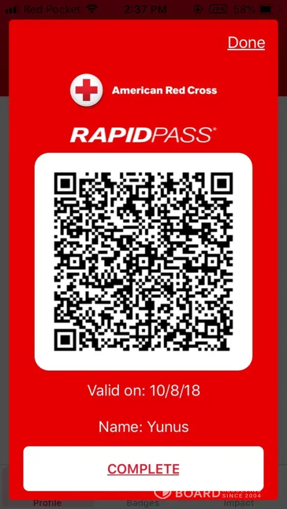 I was going to donate my blood for the second time with a blood drive event in Binghamton University today (10/8/2018). Even though I had an appointment I waited for one and half hours. Then, I complaint about my situation and they acted like nothing happened. When finally my turn came, they asked a bunch of questions to verify my name, age, address etc. which was totally fine. Then, I showed my RapidPass barcode on my phone via Red Cross app that showed that I already finished all questionnaires. They did not accept my barcode because there was no last name on the screen! Is it my problem? I showed all my information registered in the app, but because the app only shows my name alongside the barcode, they said they did not know whether this was me!