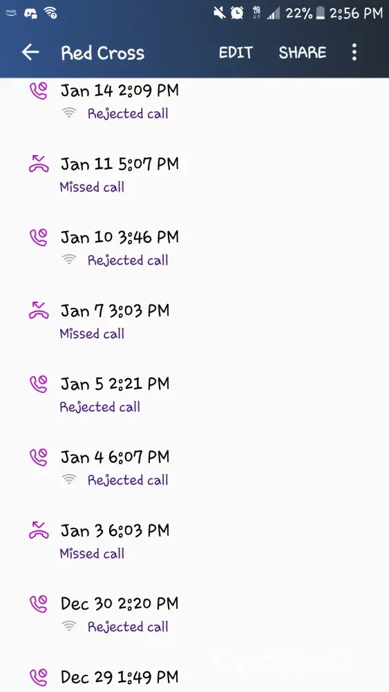 Stop calling me. Stop calling me. Stop calling me. I've asked several times to be put on the do not call list and yet I still get calls. Several times a week at all hours. I've blocked the numbers and that works for a week but then I get called several more times. I will never donate blood to you guys again because of your harassment. Seriously, no one should donate to you or give you their real number if this is how you treat people that do.