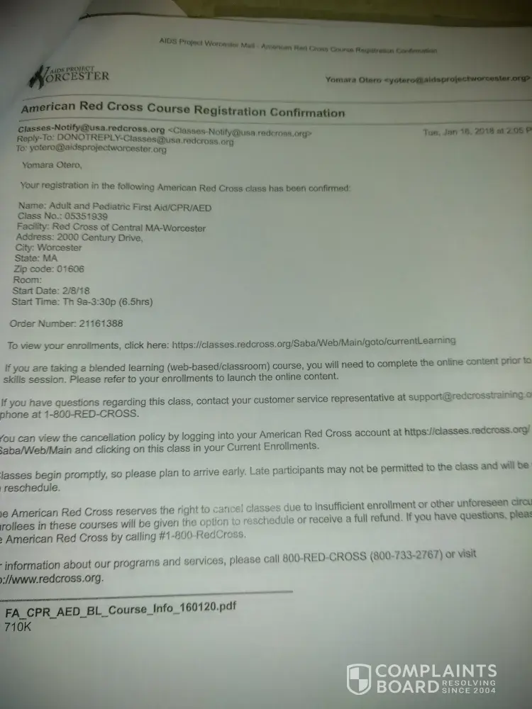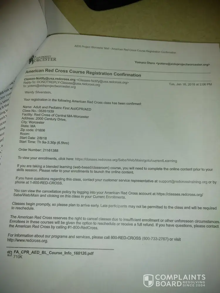 On February 8, 2018, my coworker Wendy Silverstein and I Yomara Otero arrived at the red cross located at 2000 Century Drive Worcester Ma 01606 where we had registered to attend the Adult and Pediatric First Aid/CPR/AED training facilitated by Paul Kioski, to obtain CPR our certification. While in the class room the instructor was discussing what the signs were if someone was in need of CPR. The instructor stated that he personally would not preform CPR to no one without gloves or a mask because of Hepatitis and HIV that he would only preform CPR on his family. My coworker (Wendy Silverstein) immediately spoke up and said to the instructor "You do know that HIV is not transmitted that easily by giving someone CPR". The instructor was rude and did not want to continue on the topic and dismissed what Wendy wanted to explain to him. The instructor continue with his class and we just sat there amazed to his unprofessionalism. Like 10 minutes later Wendy turned to ask me (Yomara Otero) a question and the instructor stood up and asked if there was a problem. I answered him and asked why was he so focused on us we were not disturbing his class and continue to talk over me saying well you are on your phone I said to him "I do not need to be looking at you to pay attention I am sitting here quietly listening to you. The instructor proceeded to talk over ma and said" you should just leave "referring to my coworker and myself. I answered him and said yes we will leave because you are unprofessional and we came here to become CPR certified not to listen to your personal experiences. Wendy and I then stood and proceeded to grab our belonging and Wendy said to the instructor"We work at aids project worcester and what you said earlier was very was not appropriate and you need to educate yourself more on HIV'. The instructor told us just lave as we was walking out he stated "don"t let the door hit you on your way out"that made me very upset and reacted to his comment as we walked out and called him an [censor], which I know was not appropriate. Once we were in the hallway he stated"she would never have hemorrhoids "which I don't know how that comes to the case. Wendy and I went downstairs to the reception area and asked who we can speak to that we needed to file a complaint the CPR instructor. A gentleman that works there came and gave us the name of the lady we can speak or email in regards to the incident and to ask for a refund of the money that was payed for our training. Wendy and I left the premises of the Red Cross and I immediately called my supervisor Carla Rodriguez and informed her of the incident. The resolution we are asking is a full refund in the amount of $ 204.00, for all of Red Cross facilitators have a sensitivity training, a letter of apology from instructor Paul Kioski, and last but not least if Mr. Paul Kioski refuses to apologize he be fired.