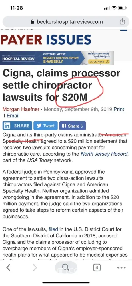 There is a successful case against ASH and their mother insurance in Pennsylvania. Hope to see all chiropractors, acupuncture and other provider come together fight against ASH and their mother insurance for unethical deny and cut back doctor cost. To prevent them using ridiculous low reimbursement in purpose to control doctors provide good care to their patient. In my opinion all doctors should boycott to ASH