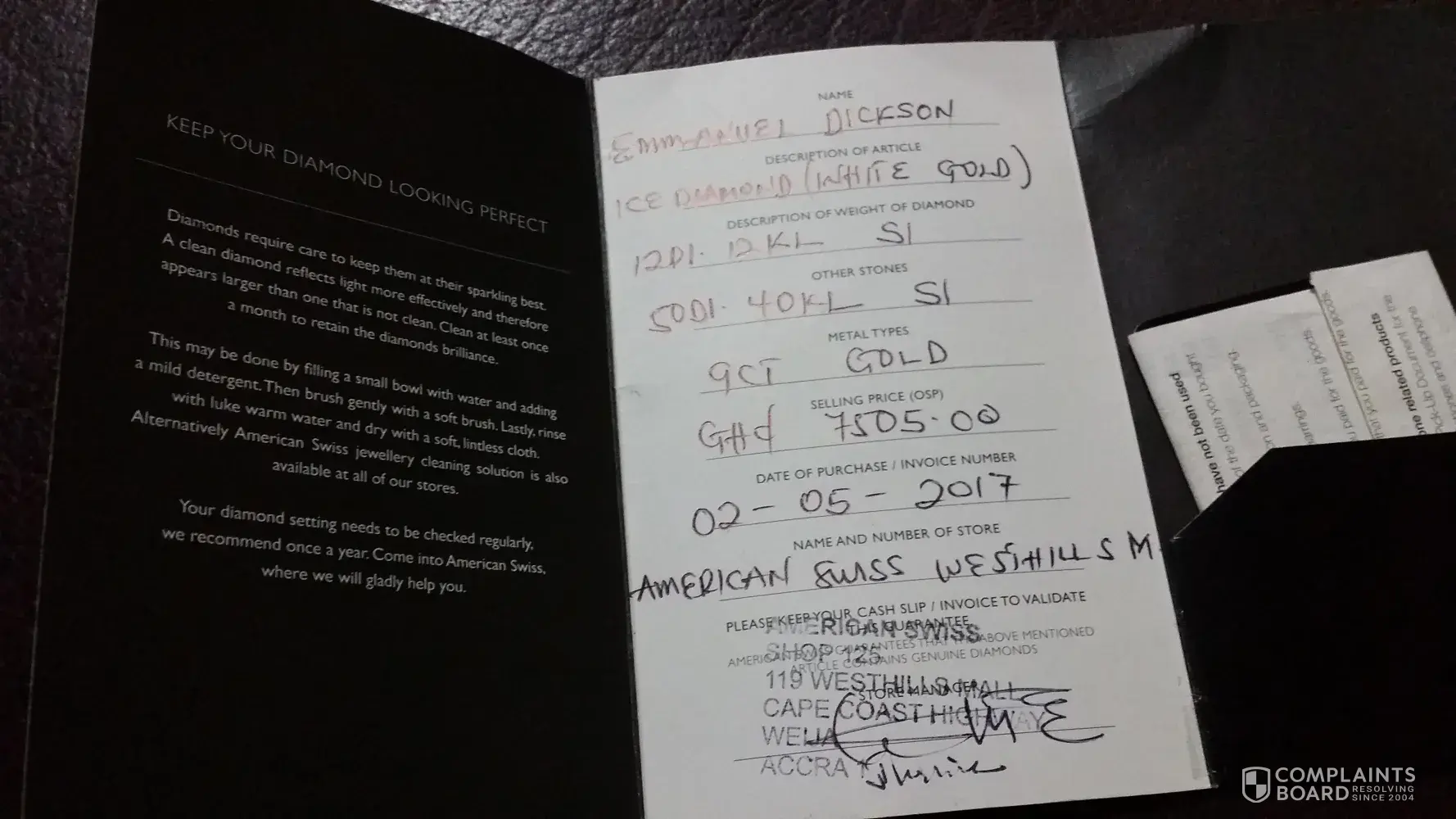 I purchased a white Gold ring from your outlet in Accra, Ghana with below address: