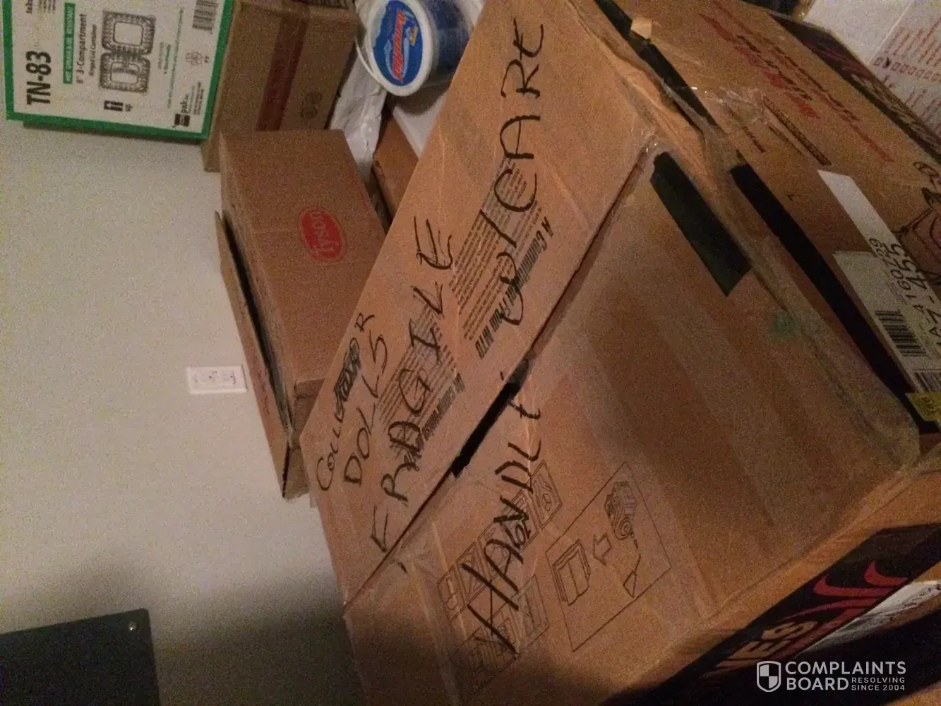 I began to go thru items. So many of my signed collectibles were broken and destroyed, very few furniture and accessory items were intact. They were chipped, crushed, dented, broken. Many items missing-heirlooms, my collectible shoe items, Christmas decorations, kitchen pots and pans, new coffee maker and roasting pans still in original boxes, artwork. My husband unwrapped the 65" TV and to his horror, the screen was cracked from end to end and the back was dented in. It appeared that our items were just thrown into the trailer unsecured without anyone caring how we received them. My husband took photos of the TV and sent them to Sam. During one conversation my husband said he would drive to So CA to retrieve our missing items and was quickly discouraged from doing so by Sam.