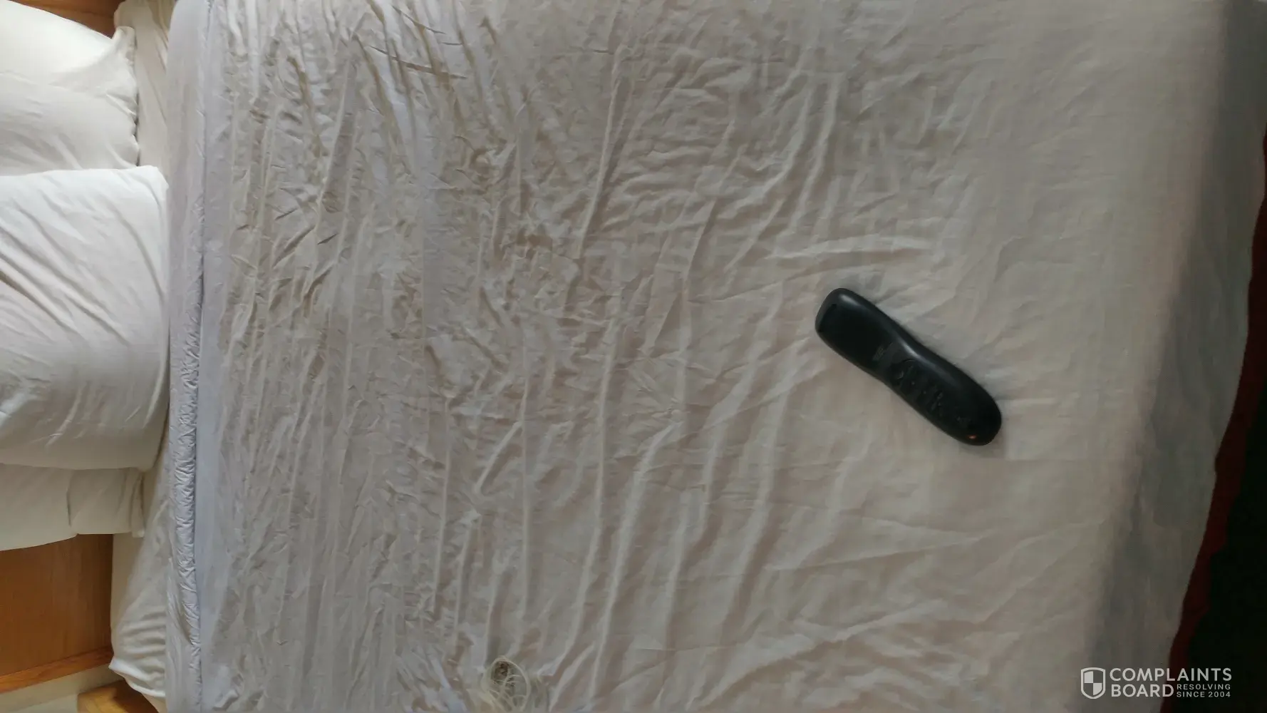 We booked a room in Mackinaw City Mi. on line as we were coming home from a 2 week vacation out west and had stayed in an Ameticas Best Value hotel in S. Dakota that was impeccable and so reasonablly priced. However the one in Mackinaw was overpriced at $ 125.00 per night for a 3 star hotel. When we got to the hotel they said they didn't realize we had dogs however it was on our confirmation. The clerk told my husband Just don't let the dogs crap on the floor. Whick I don't see what it mattered being the carpet was all heavily stained along with the chairs, the room smelled and there were stains on the ceiling over the shower. And the final straw was the bedding was all wrinkled and looked as it was just remade and not changed. Needless to say we left and drove an additional 5 hours home instead of staying. We are now waiting to hear if we will be able to get our money back. The pictures of the room in no way depicted the room.So that in itself is false advertizing After the fact I checked other reviews on this hotel and there were more negative than positive ones. Will not be staying there again. Can only send 1 pic of the bed but I have more if you need them.