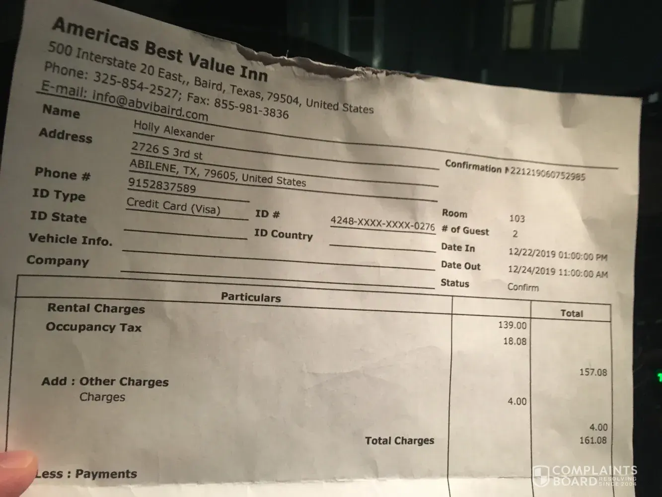 Read full complaintnasty hotel front desk clerk / double charge