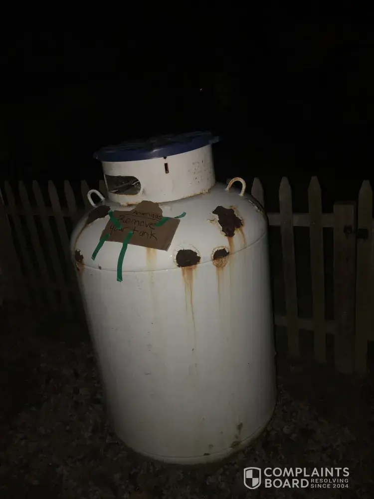 After I was set up with my new supplier, I again called your customer support to request that your tank be picked up. To date I haven't heard back.