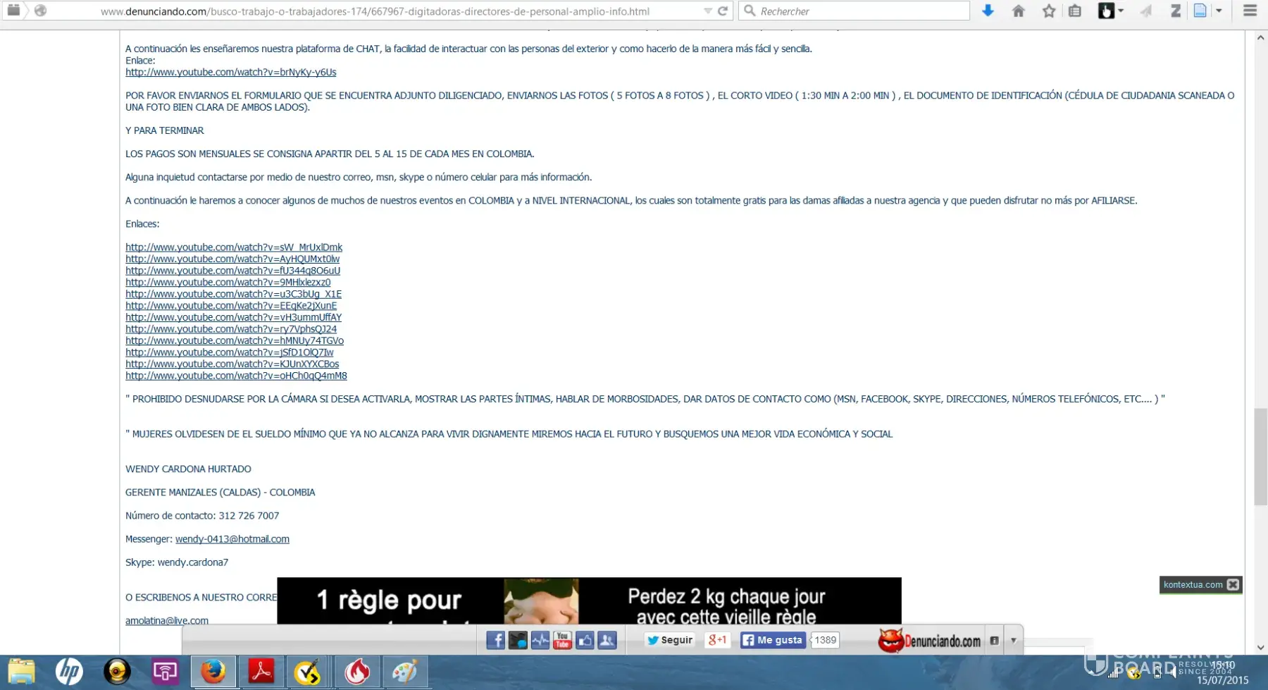 On exemple in spanish: The Web page in Colombia of the local agency : they recruit pay woman from 18 to 41 to chat with man 1 mn = 100 pesos. They can chat with 10 men a the same time and tehy are paid x10 and they are not allowed to exchange email adress or skype or Face book.
