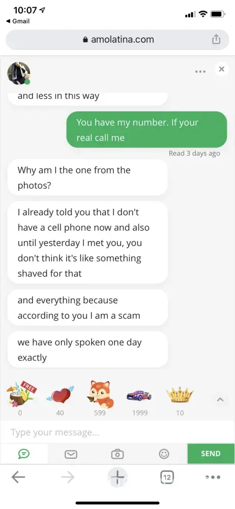 I have been communicating with women on amolatina for a very long time; I have also spent thousands in doing so. I have found that as soon I ask about exchanging information, the women lock up, and don't want too - "please, let's us the site..." the site is a complete scam, and the money we unsuspecting men are paying is ridiculous! So, let's get to the real reason for my complaint, and why I will involve the fbi. I thought i'd try the; "send a gift" option to one particular woman and spent a couple of hundred dollars doing so. I was told by doing so the lady would then have my contact information, and she could communicate outside of the site. A few days after the purchase the lady sent me an email (internal through the site), and said thank you so much, and that the orchid was beautiful - here's what angered me. She attached two photos, one with her and the orchid, and then a picture of her holding my contact information - guess what! The images were the same, and the orchid was photoshopped in, as was the paper with my contact information. When I asked the lady about it, she had no idea what I was talking about and said she never sent photos. I tried to download the images, but the site will not let you, so I did screenshots and then created a pdf file and made my complaint to amolatina. At first, the site was apologetic and told me they would get back to me... Well, it's going on two weeks and nothing. I found this forum and felt I needed to make this known. I mentioned reaching out to authorities, and so forth, I even asked for a refund. That said, I have a call with the fbi https://www.fbi.gov/scams-and-safety/common-fraud-schemes/internet-fraud to discuss in great detail, and if anyone reading this can provide as I have, please, let's get busy and shut this site, and associated sites down. Amolatina is a scam... Period.