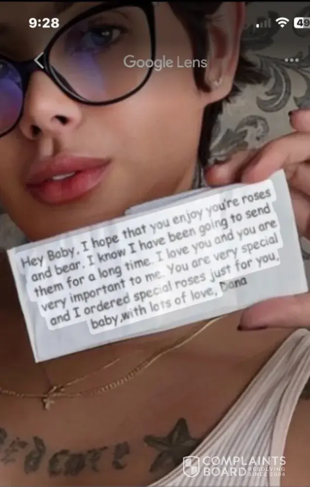 I had been talking to Patti for over a year. I sent her some roses and teddy bear last year. When she received the gift I was sent a email with a picture of her holding the gift. You are allowed to write them a letter to send with the gift. I checked out the letter on google lens and you can tell it’s a fake letter and was photoshopped. I’m including a...